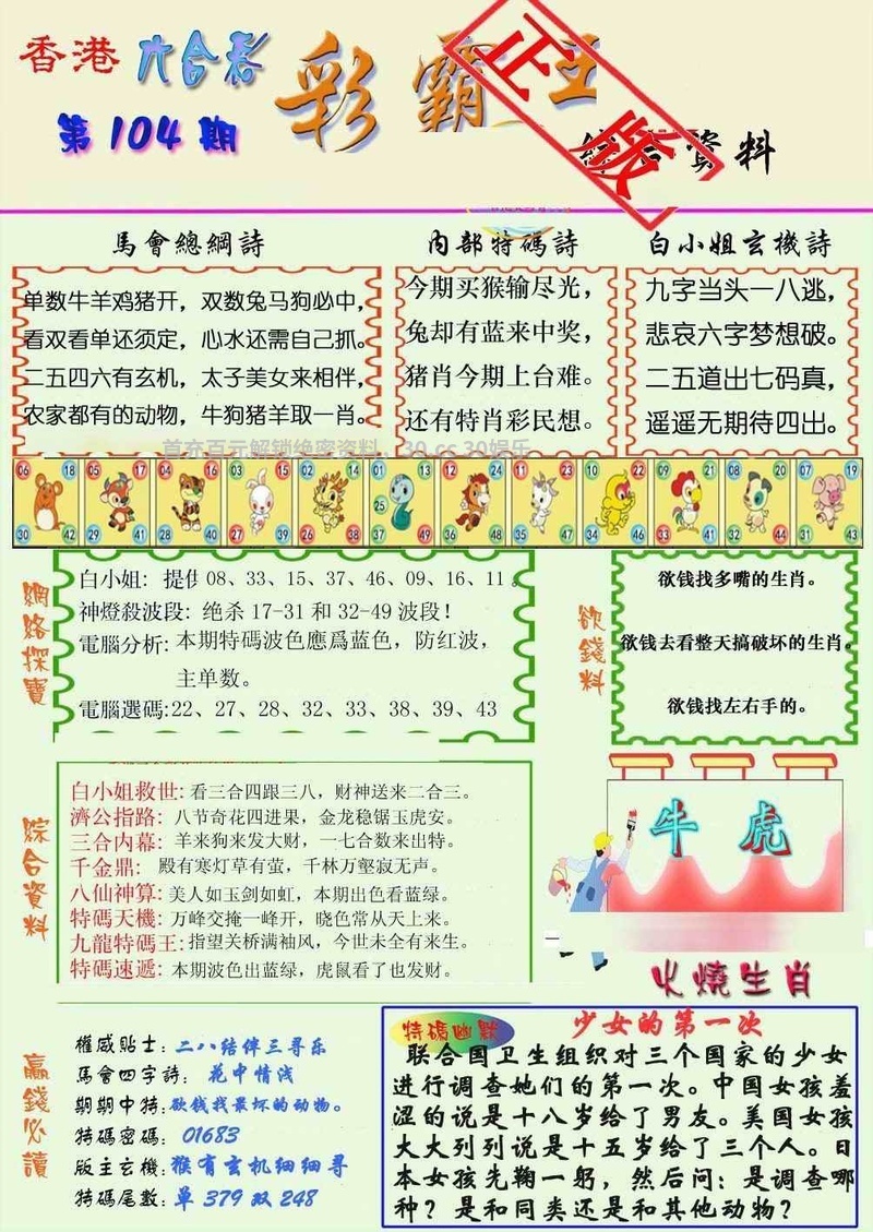 104期:☀平特三肖☀♠【羊+鼠+猴】♠ |