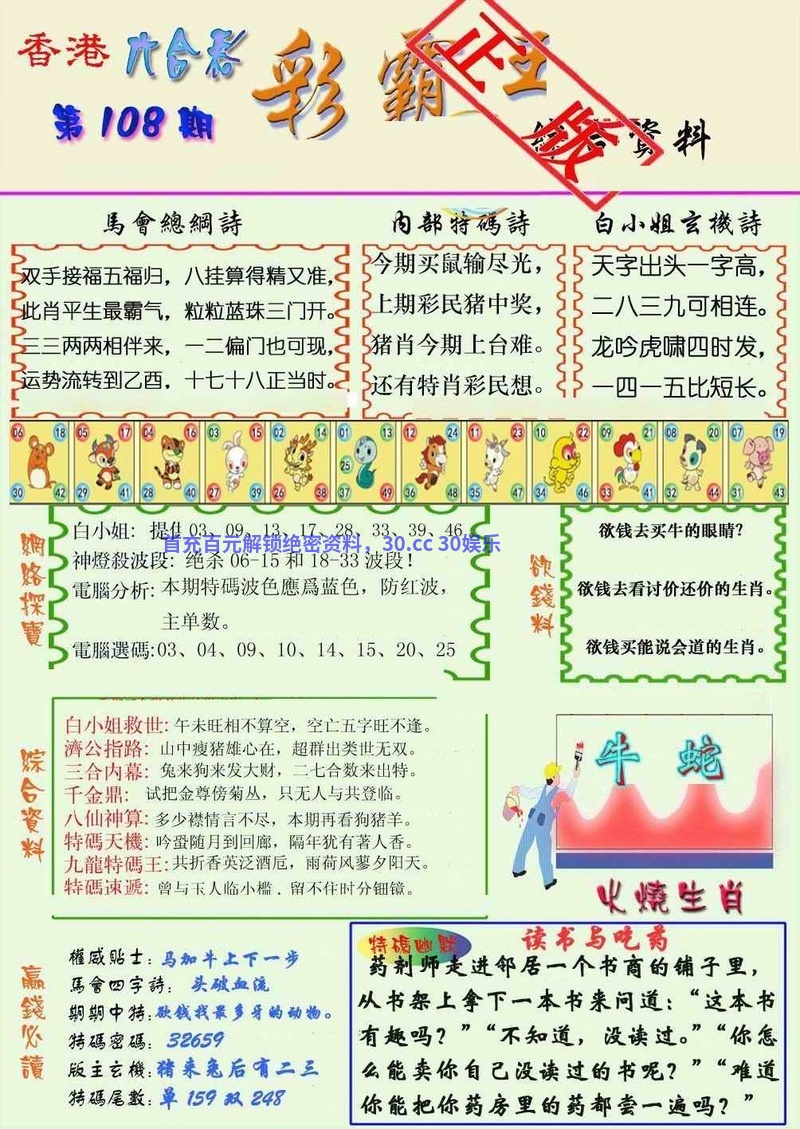 103期:☀平特三肖☀♠【牛+蛇+兔】♠ |